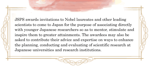 Foreign researchers such as Nobel laureates, who possess a record of excellent research achievements and who are mentors and leaders in their respective fields.