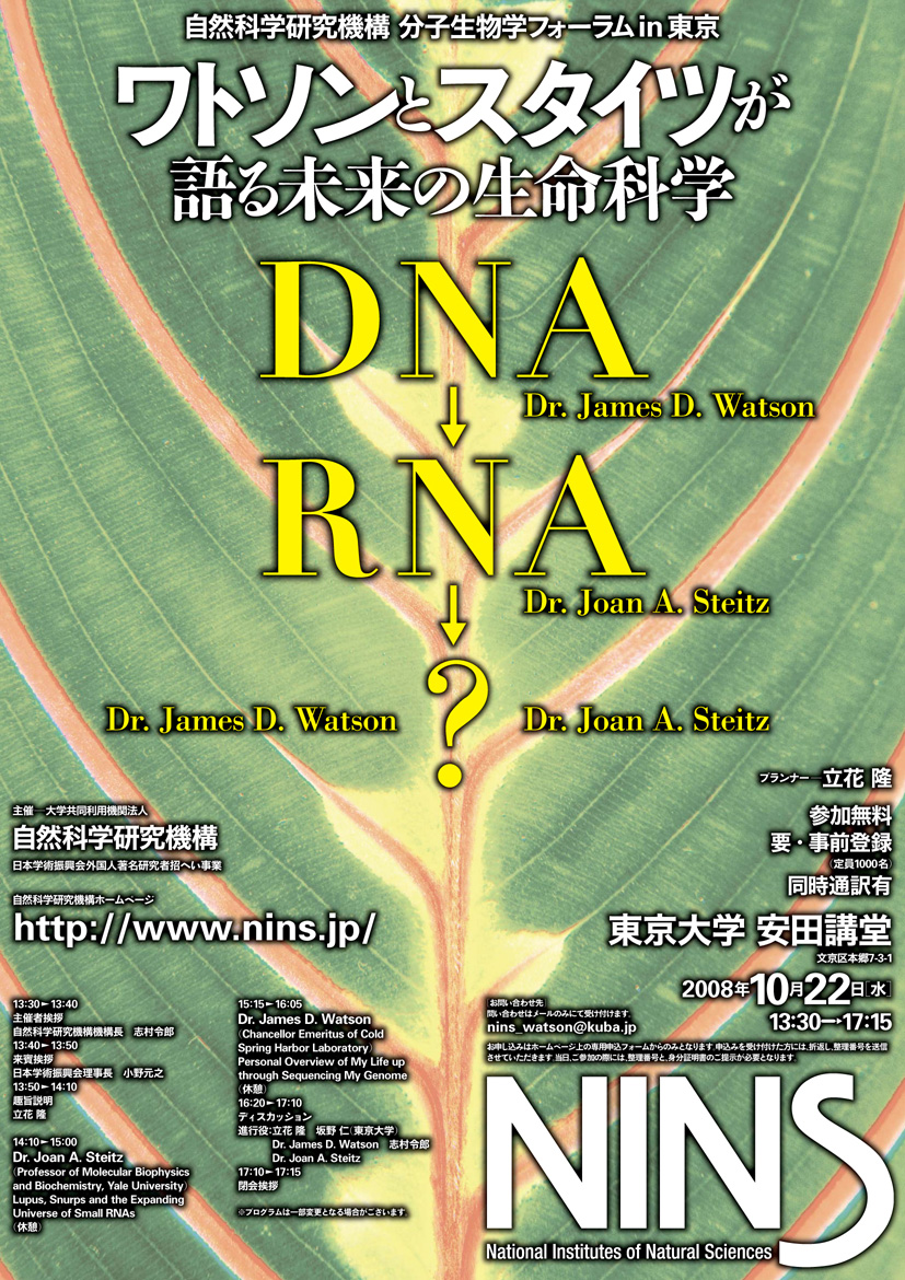 | フォーラム: | 「ワトソンとスタイツが語る未来の生命科学」 |