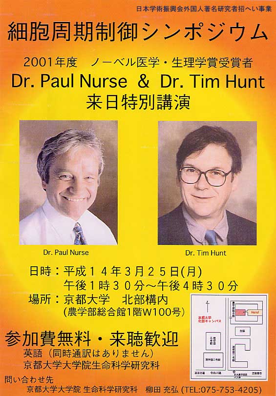 | 著名研究者: | Dr.Paul Nurse & Dr.Tim Hunt ノーベル医学・生理学賞受賞者 |