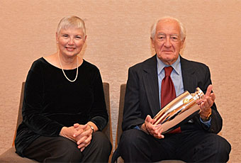 | 賜品を手にするアルトマン博士(左は受賞者の配偶者) |