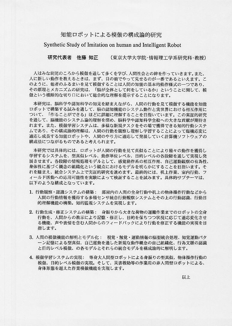 | 知能ロボットによる模倣の構成論的研究 |