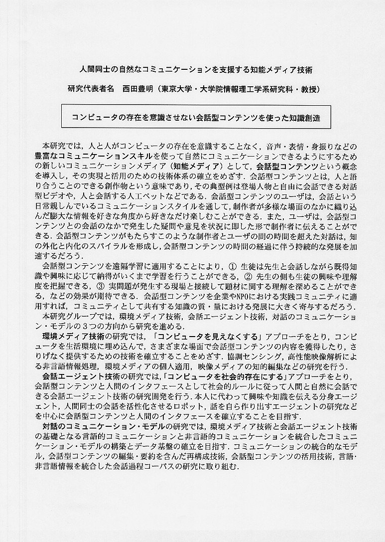 | 人間同士の自然なコミュニケーションを支援する知能メディア技術 |