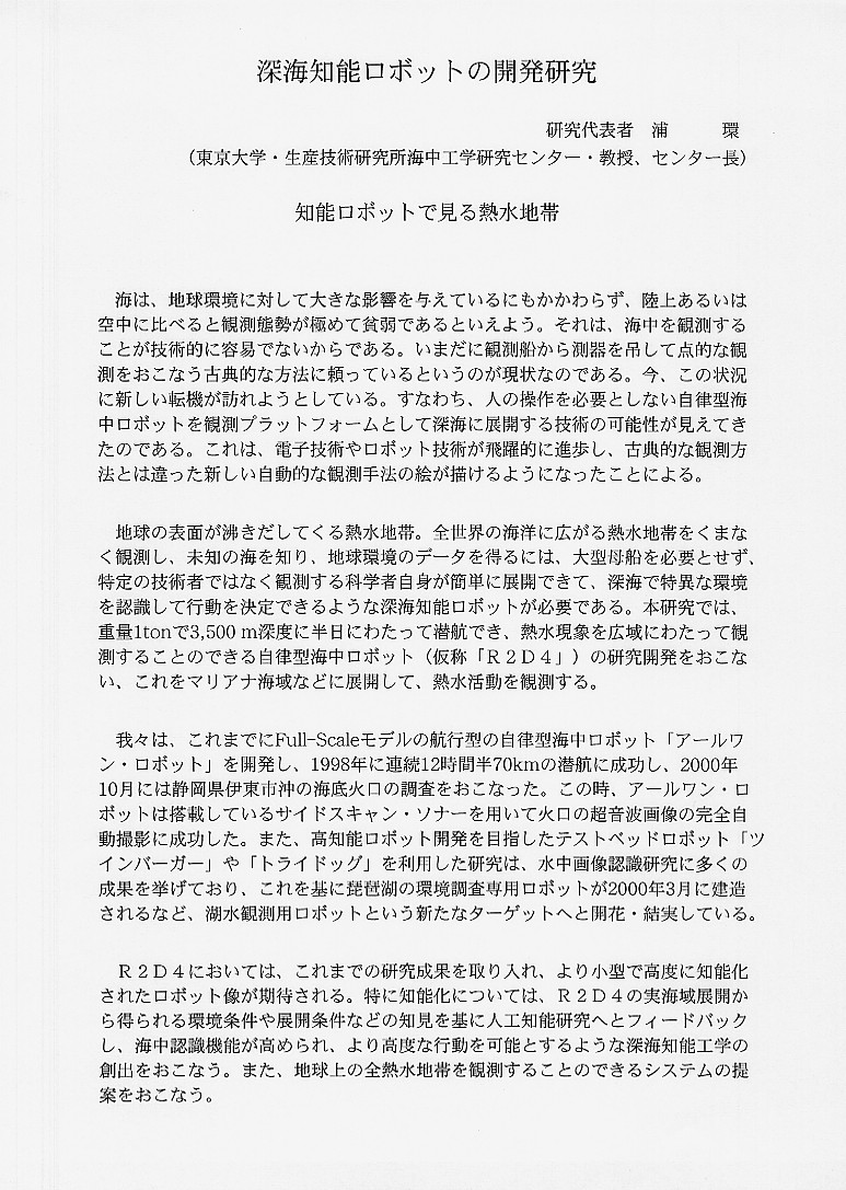 | 深海知能ロボットの開発研究 |