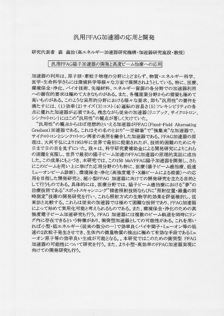 | 汎用FFAG加速器の応用と開発 |