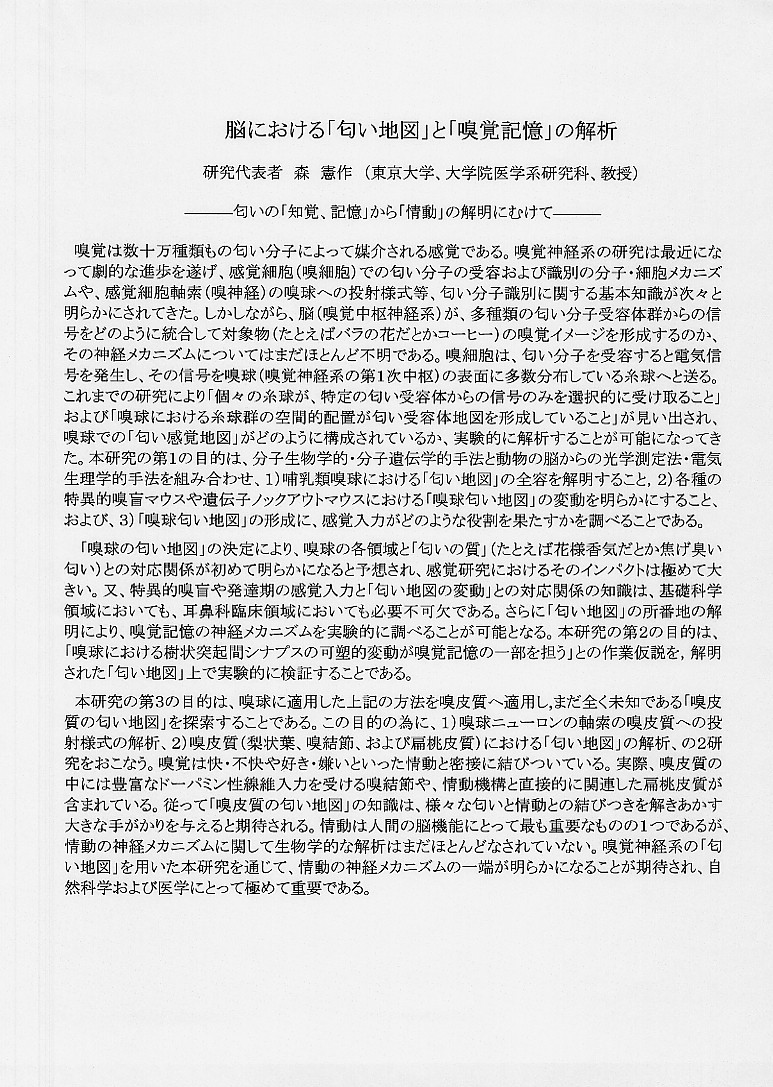 | 脳における「匂い地図」と「嗅覚記憶」の解析 |