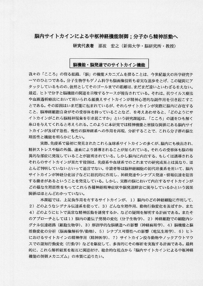 | 脳内サイトカインによる中枢神経機能の制御メカニズム:分子から精神活動へ |