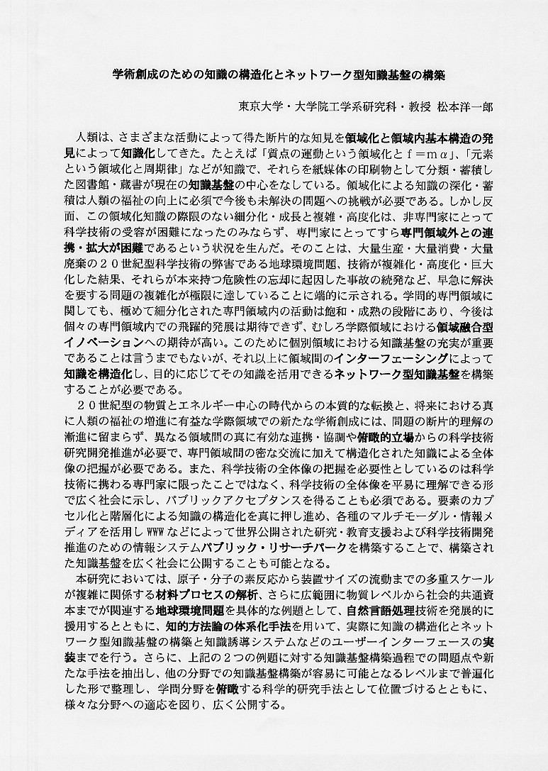 | 学術創成のための知識の構造化とネットワーク型知識基盤の構築 |