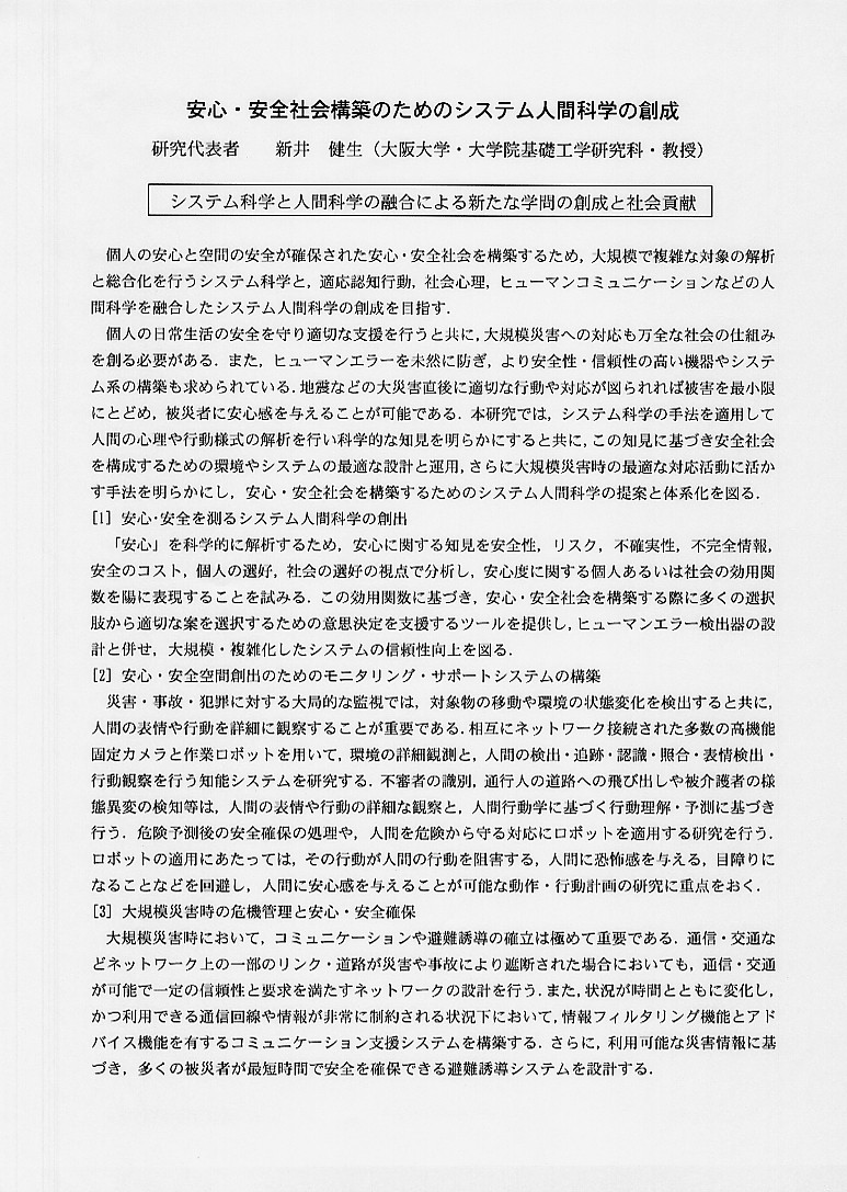 | 安心・安全社会構築のためのシステム人間科学の創成 |