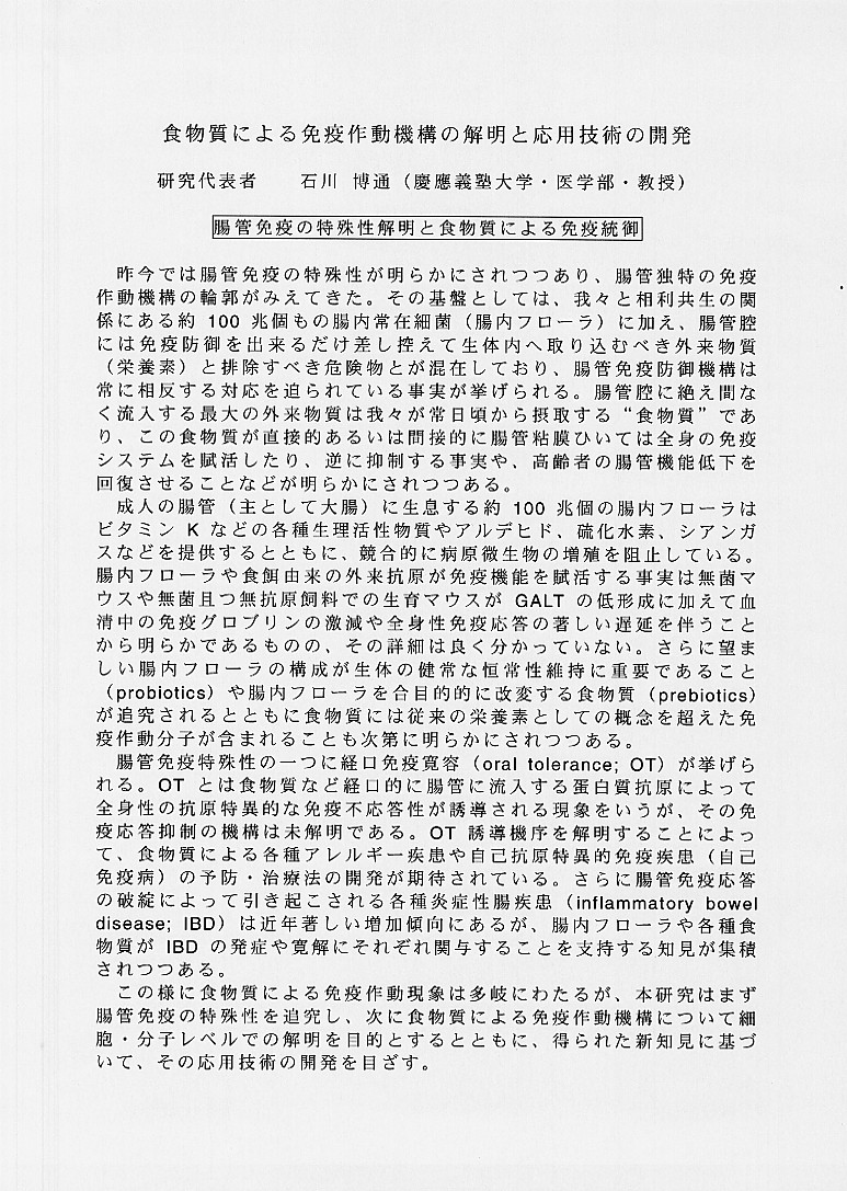 | 食物質による免疫作動機構の解明と応用技術の開発 |