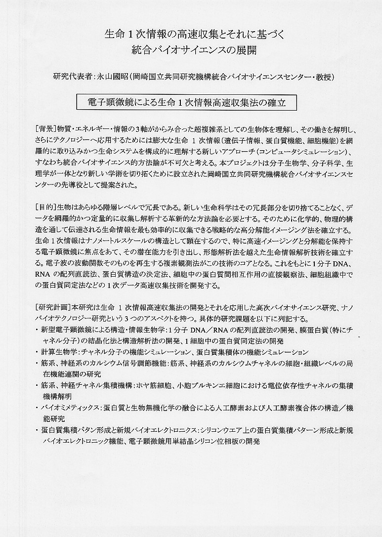 | 生命1次情報の高速収集とそれに基づく統合バイオサイエンスの展開 |