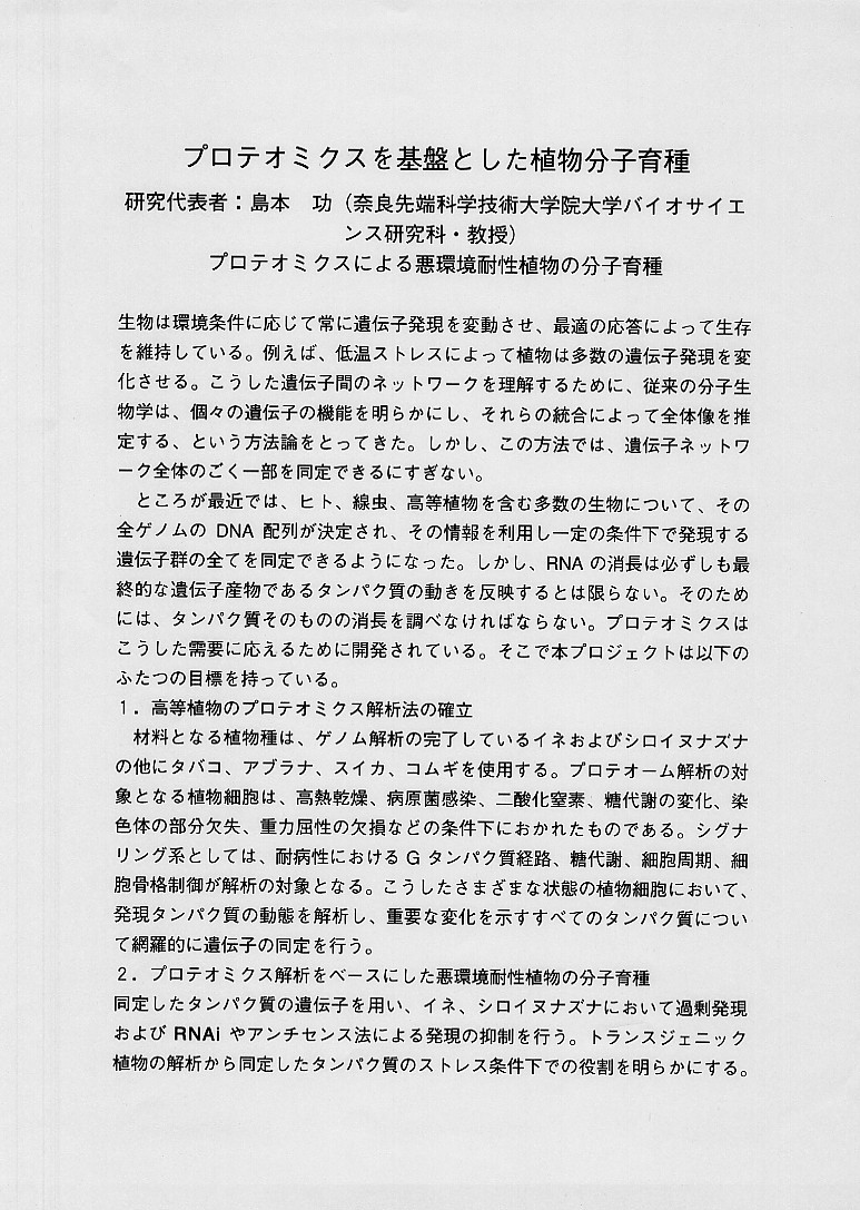 | プロテオミクスを基盤とした植物分子育種 |