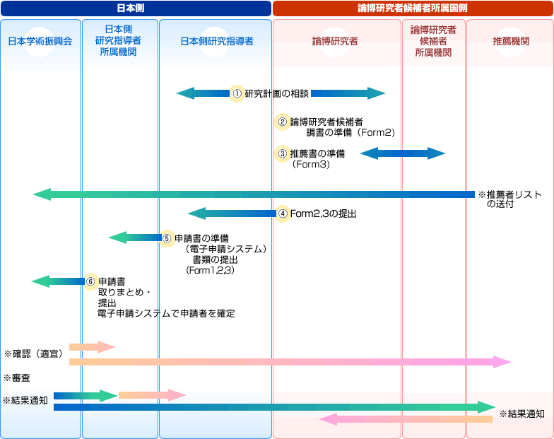 論博研究者候補者は日本側研究指導者(日本で博士課程を受け持つ常勤研究者)と申請内容について相談してください。