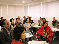 ![]() 写真1:会場案内看板 「医療保険と高齢者制度のこれから」という演題で開かれた会場には、約30人ほどの近隣地区の市民が参加した。 療養病床には、医療保険が使える医療療養病床と、介護保険が使える介護療養病床があるが、数年のうちに後者を廃止されようとしている。後者は、いわゆる「社会的入院」が多いからだというのがその理由であるが、実際には、後者に、医療を必要としている人たちが入院している。なぜそうなっているかというと、介護保険のほうが、診療報酬が多い場合があるからだ、という研究結果が説明された。 参加者からは、医療制度に関する多くの質問、意見と提案がなされ、この問題への関心の高さがうかがわれた。ただ、今回は、後期高齢者医療制度については説明しなかったのだが、それへの関心は非常に高く、いくつかの質問が出され、活発な議論がおこなわれた。